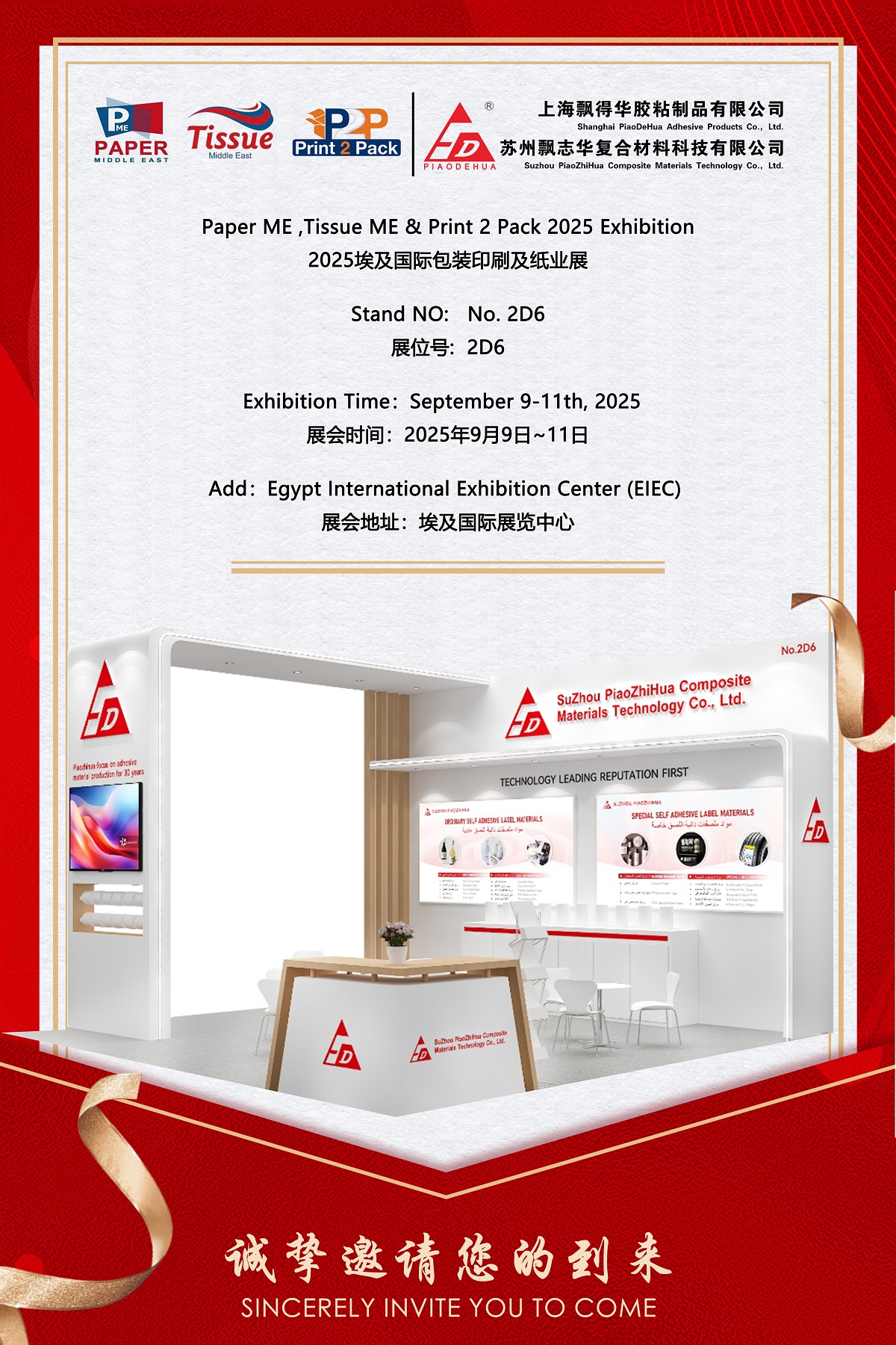 SuZhou PiaoZhiHua tem o prazer de participar da exposição Paper ME, Tissue ME & Print 2 Pack 2025, uma importante plataforma regional para as indústrias de embalagens, impressão e papel, realizada de 9 a 11 de setembro de 2025, no Centro Internacional de Exposições do Egito (EIEC) no Cairo. Como fornecedor líder de materiais de etiquetas autoadesivas, a Piaozhihua apresentará sua ampla linha de produtos adesivos comuns e especiais no estande nº 2D6, destacando soluções projetadas para aplicações padrão e exigentes.