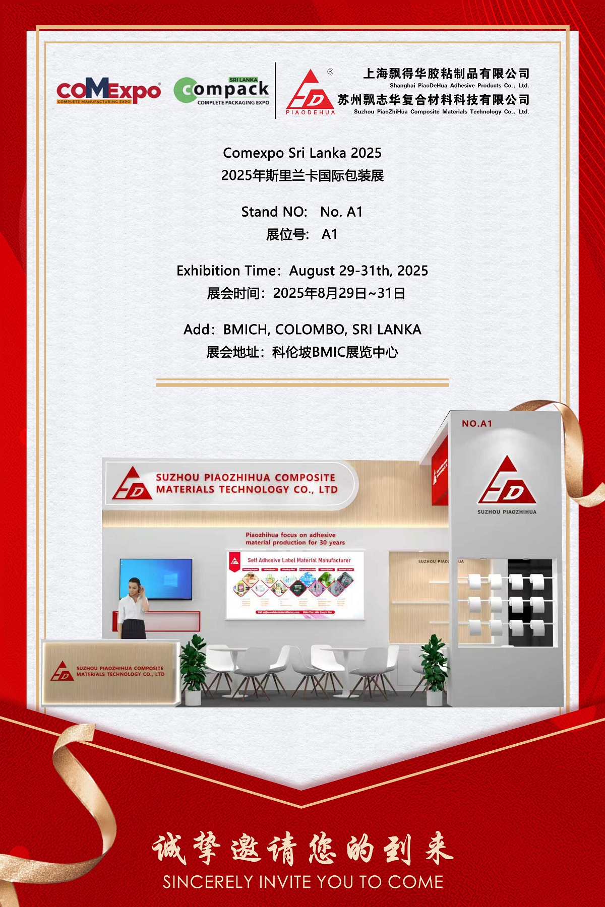 A Piaozhihua tem o prazer de anunciar sua participação na Comexpo Sri Lanka 2025, uma das feiras internacionais de embalagens mais influentes do Sul da Ásia, que acontece de 29 a 31 de agosto de 2025, no BMICH em Colombo, Sri Lanka. Como fabricante líder de materiais adesivos com mais de 30 anos de experiência, a Piaozhihua apresentará suas soluções inovadoras de etiquetas autoadesivas e materiais compósitos avançados no estande nº A1. A empresa pretende fortalecer a sua presença no mercado do Sul da Ásia e promover colaborações mais profundas com parceiros da indústria.